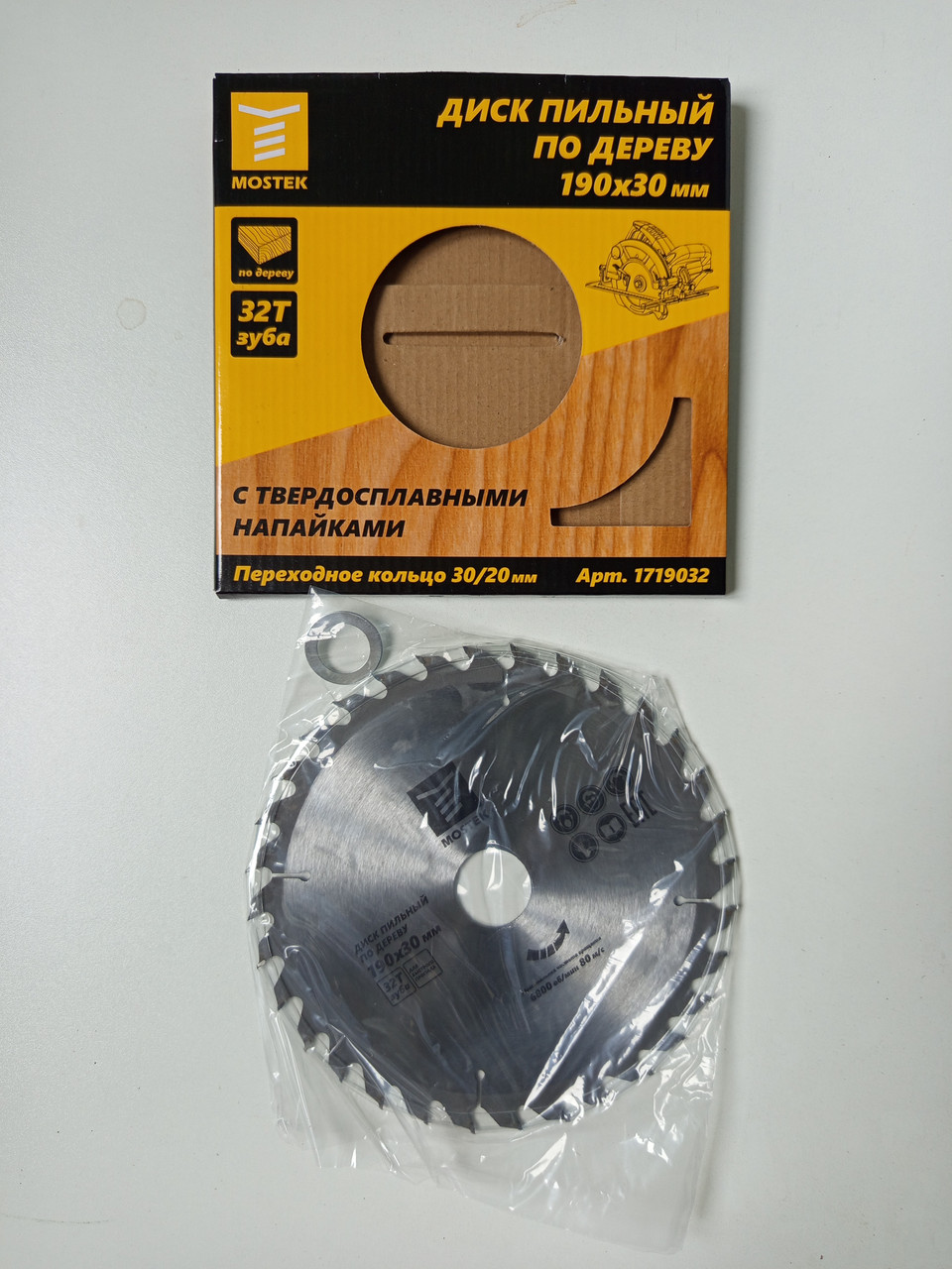 Диск пильный по дереву MosTek 190x30/20 мм, 32Т зуба