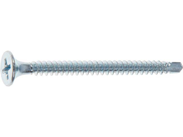 Саморез предназначен для монтажа гипсокартонных листов (ГКЛ) к профилям из листового металла. Изготовлен из высокопрочной стали с цинковым покрытием, которое защищает от коррозии. Наконечник сверло позволяет сверлить металл толщиной до 2,0 мм непосредственно во время вкручивания